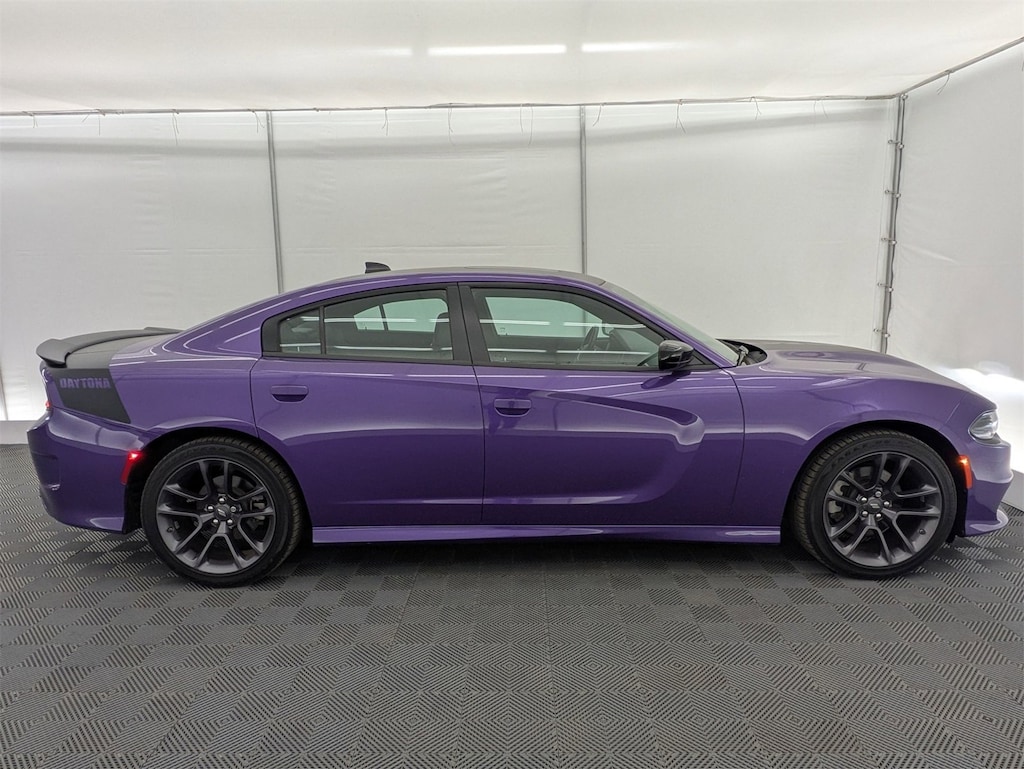 This isnât just a Charger itâs a Daytona Edition finished in iconic Plum Crazy Pearlcoat, built to turn heads and back it up with real V8 muscle. Under the hood, the legendary 5.7L HEMI® V8 with Multi-Displacement VVT delivers that unmistakable rumble and rear-wheel-drive performance that defines modern American muscle.