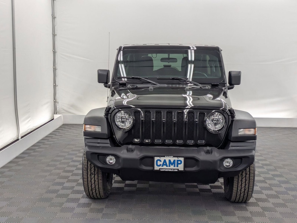 The 2022 Jeep Wrangler Unlimited Sport Altitude takes everything iconic about Wrangler and gives it the full stealth treatment gloss black wheels, black badging, black interior accents, and that unmistakable Black Clearcoat finish.